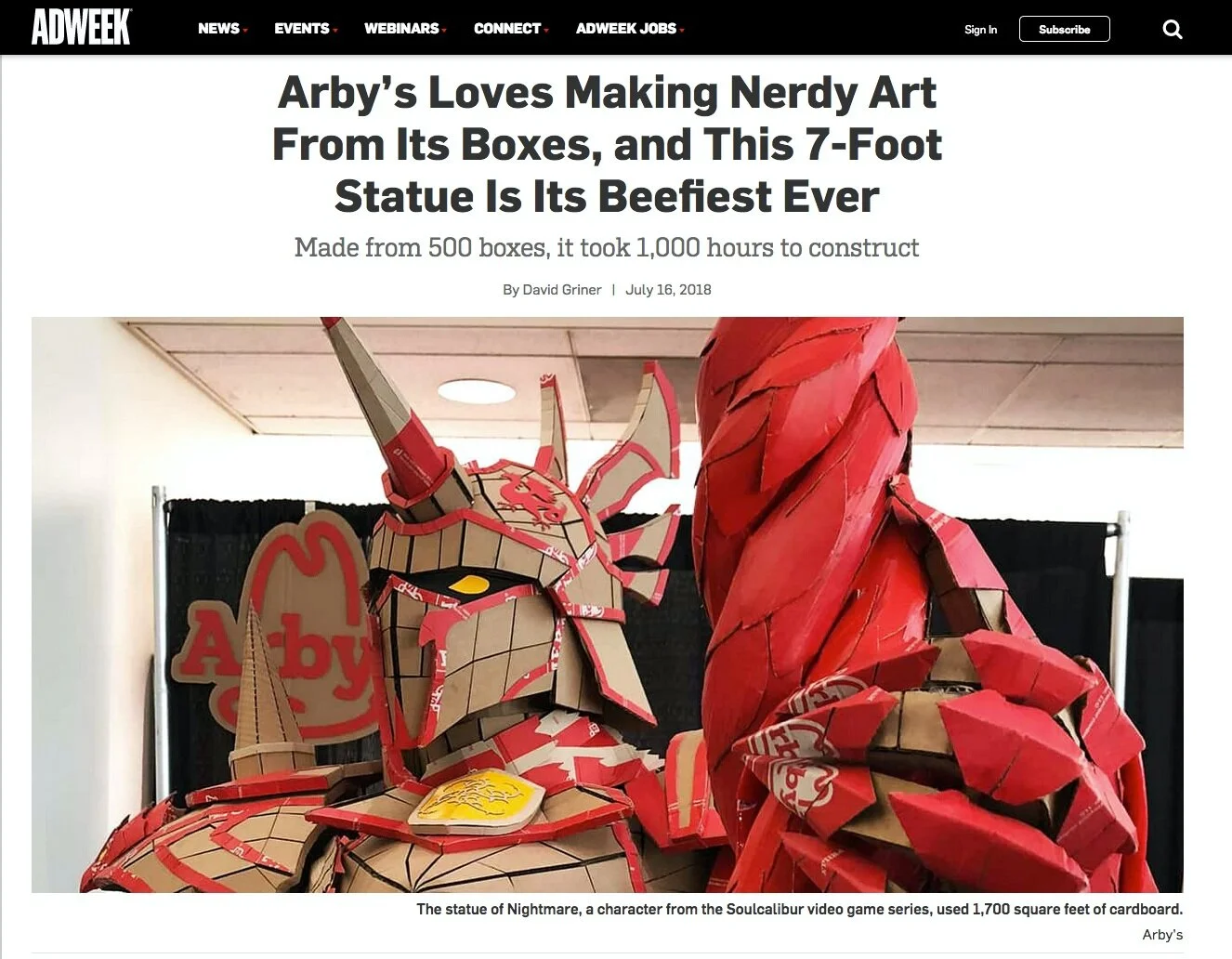 Soul Calibur 6, the long anticipated new chapter in the Soul Calibur fighting games series, was scheduled to be released shortly after Anime Expo so we knew there was already existing cultural buzz around the game that could be tapped into. We reached out to Soul Calibur’s legendary game developer Bandai Namco and Volpin Props, a world class prop house based in Atlanta, and all partnered up to bring the new game’s lead character to life in such an epic fashion, Arby’s and Soul Calibur fans still haven’t stopped talking about.